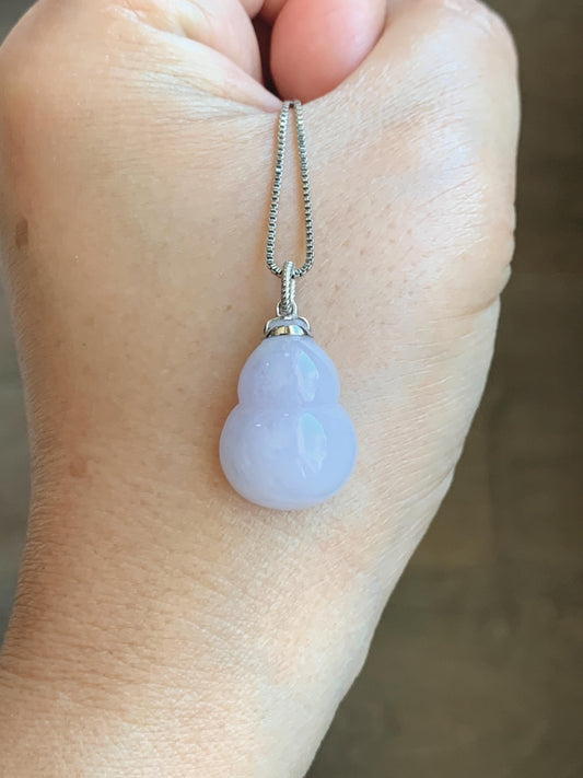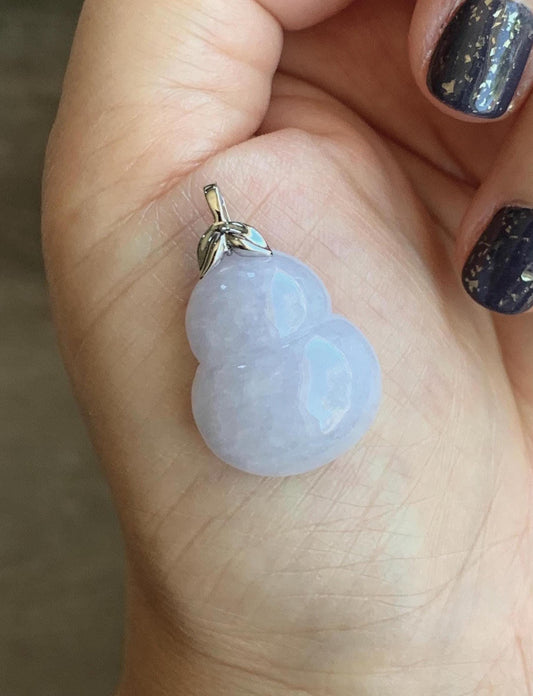 Certified Natural Grade A Icy Translucent Gelatinous Light Purple Jadeite Large Gourd Hulu Pendant 14K White Gold 7.61g 天然冰淡紫翡翠葫芦镶嵌吊坠 9454