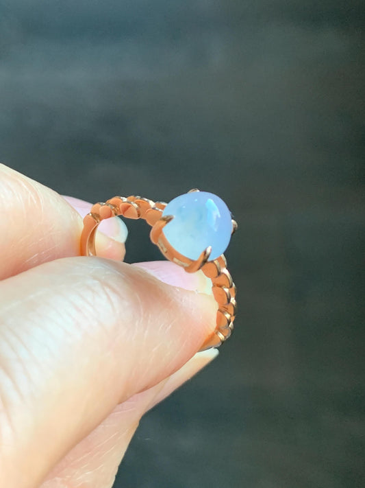 I absolutely love this ring! So unusual, and with the bamboo setting, it's very stunning! The jade are both clear and sparkly! Fast shipping and nicely packaged!