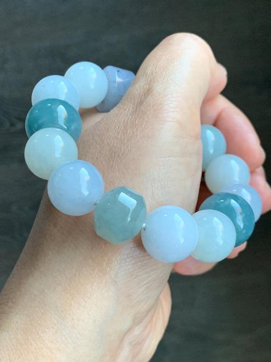 Natural Grade A Icy Translucent Gelatinous Multicolored Jade Jadeite Large Beads Beaded Bracelet 7" 86g 天然冰胶多宝翡翠大卡圆珠鼓珠手串 MDB740