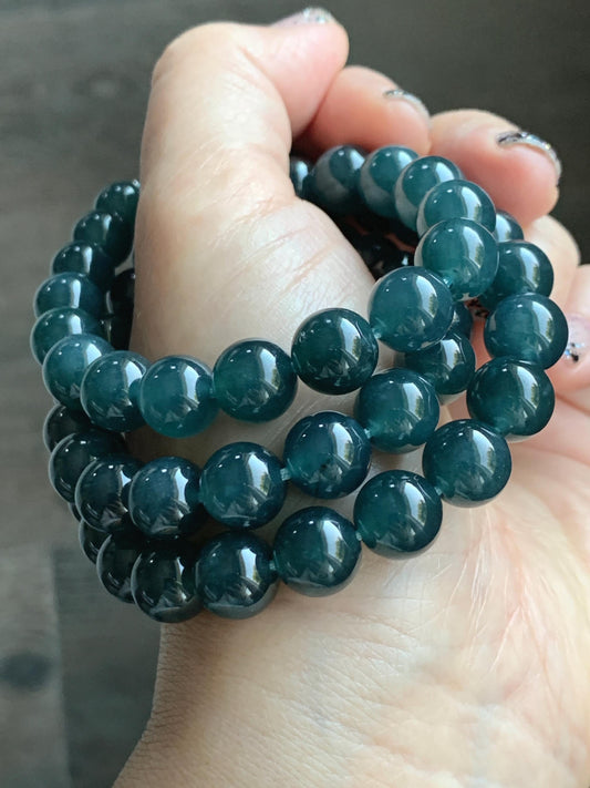 Natural Grade A Guatemalan Icy Translucent Dark Aegean Blue Jade Jadeite Beaded Necklace 23.25” 95g Sterling Silver 天然冰胶危深牛仔蓝翡翠大卡圆珠项链SNJL688