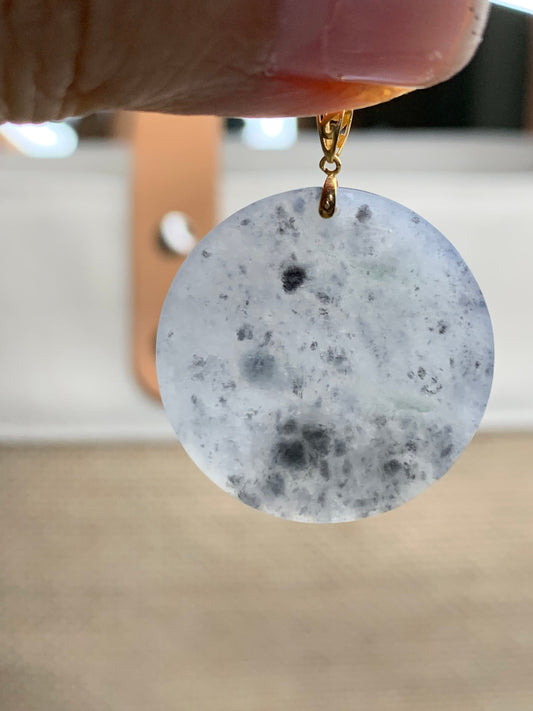 Natural Icy Translucent Wuji Jadeite Disc Wu Shi Tag Blessing Amulet Pendant 18K Yellow Gold 天然冰乌鸡翡翠无事牌吊坠
