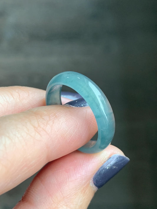 Natural Grade A Guatemalan Icy Highly Translucent Light Blue Wuji Jade Jadeite Band Ring Size 9 US 天然冰胶危淡蓝乌鸡翡翠戒圈 WWJ55B