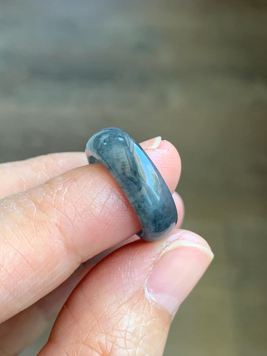 Natural Grade A Guatemalan Icy Translucent Gelatinous Dark Wuji Jade Jadeite Band Ring Size 2.75 US 天然冰胶危乌鸡翡翠戒圈 WWJ150B