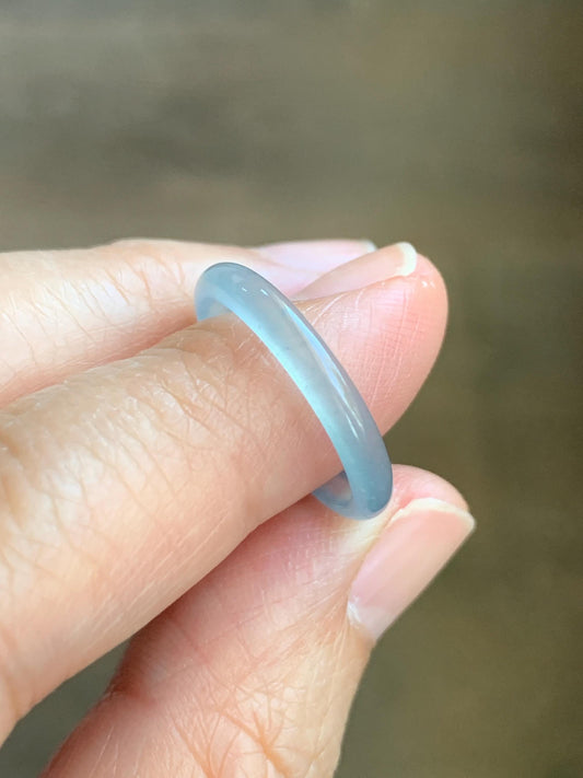 Natural Grade A Guatemalan Premium Icy Highly Translucent Pastel Teal Blue Jade Jadeite Band Ring Size 6.5 US 天然冰危蓝绿起冰起光翡翠戒圈 XQL44B