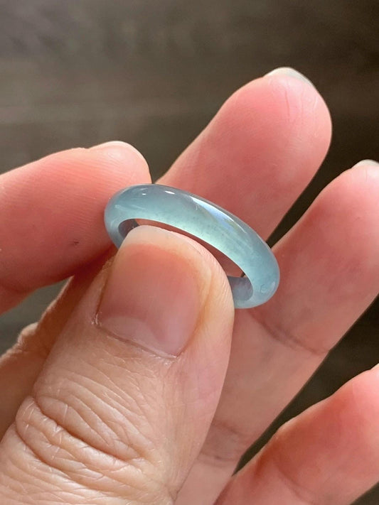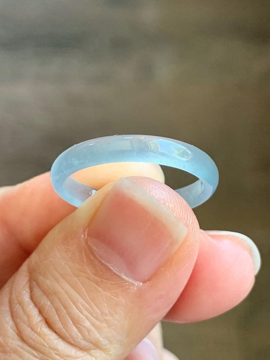 Natural Grade A Guatemalan Icy Highly Translucent Gelatinous Light Teal Blue Jade Jadeite Band Ring Size 6.5 US 天然冰危浅蓝起光翡翠戒圈 WLK44-A