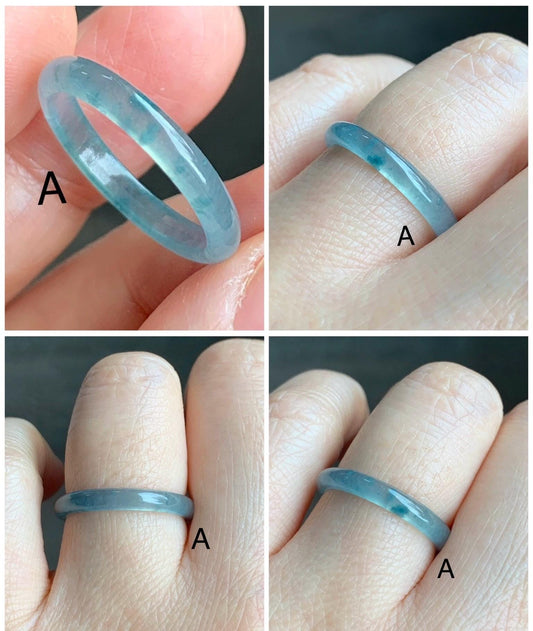 Natural Grade A Guatemalan Icy Highly Translucent Pastel Teal Blue Marbled Jadeite Band Ring Size 6-7.25 US 天然冰危起光浅蓝飘花翡翠戒圈 WDLP