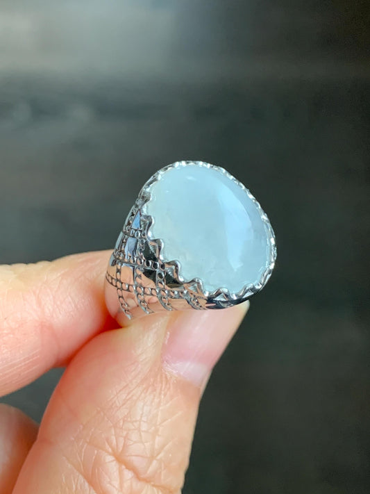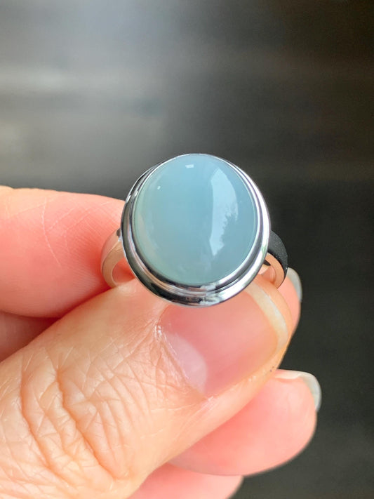 Certified Natural Guatemalan Icy Translucent Dusty Light Blue Jadeite Large Oval Ring Sterling Silver size 7.25 US 5.17g 天然冰胶危浅蓝翡翠镶嵌戒指 7399