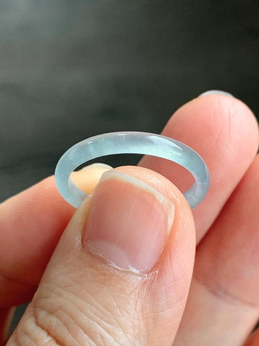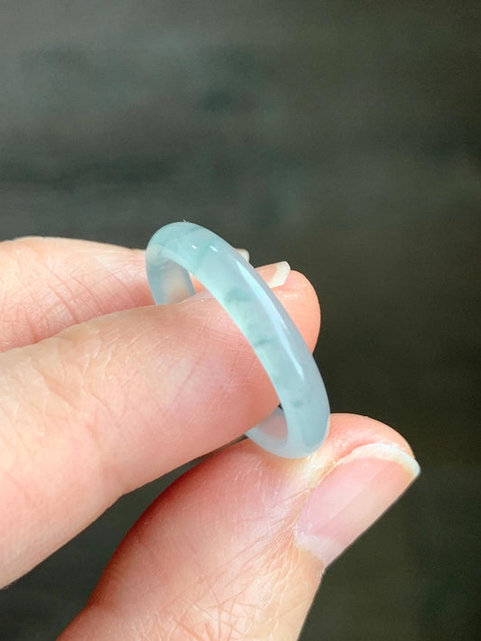 Natural Grade A Guatemalan Icy Highly Translucent Pastel Teal Green Jadeite Band Ring Size 7.75 US 天然冰危起光浅绿翡翠戒圈 QLW180A
