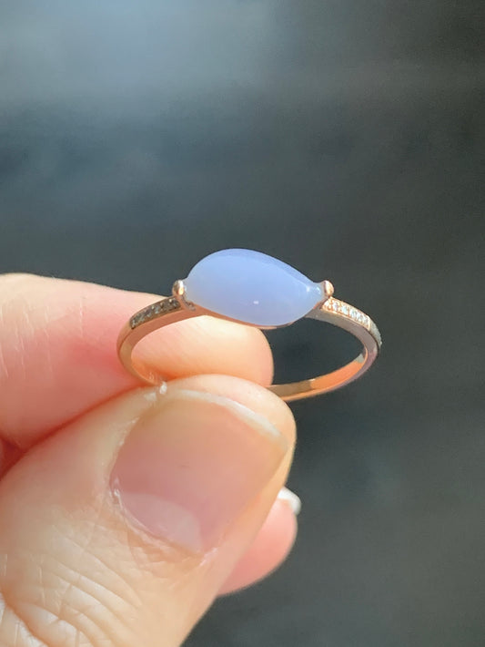 Certified Icy Light Lavender Horse Eye Cut Jadeite Ring 18K Rose Gold with Diamonds Sz 7 US 1.54g 天然冰紫翡翠马眼钻石镶嵌戒指