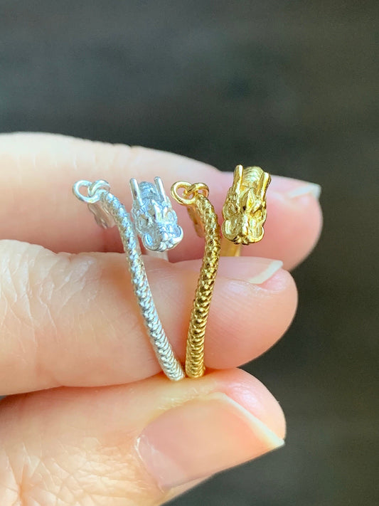 S925 Sterling Silver Dragon Bypass Style Open Band Ring Size Adjustable 3 grams S925纯银盘龙重银开口可调节戒圈