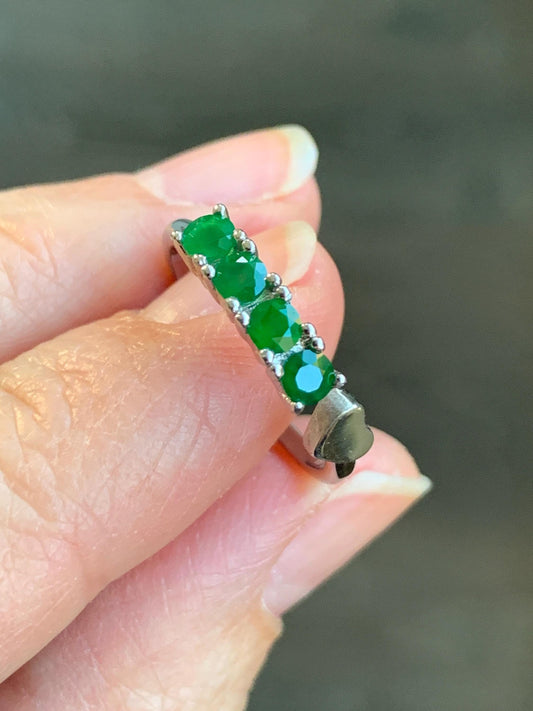 Natural Guatemalan Icy Translucent Vibrant Green 4-Stone Jadeite Diamond Faceted Open Band Ring Size 6 US Sterling Silver 天然冰危绿钻石翡翠镶嵌开口排戒