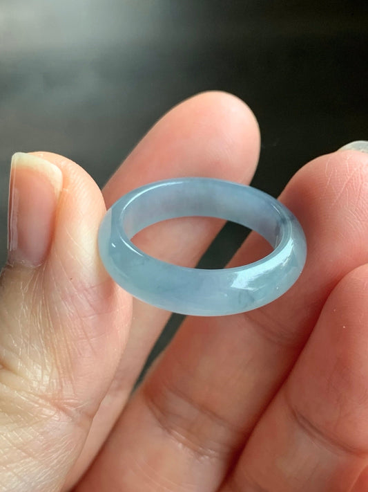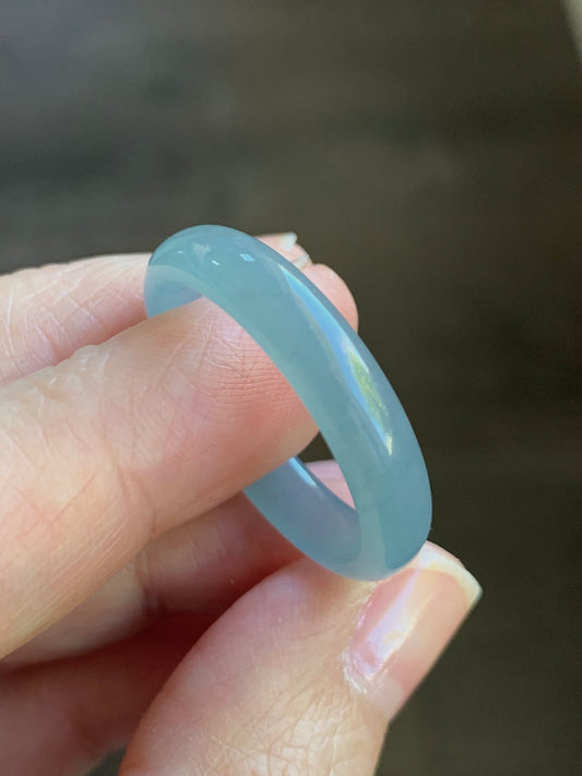 Natural Guatemalan Icy Translucent Gelatinous Light Dusty Blue Jadeite Open Band Ring size 12.25 天然冰危淡蓝翡翠开口戒圈
