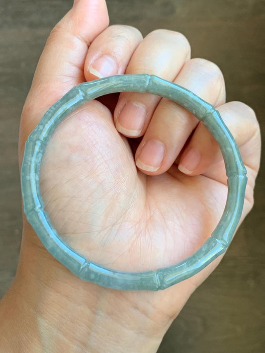 Certified Natural Grade A Guatemalan Icy Translucent Pastel Blue Jade Jadeite Carved Slim Bamboo Bangle 62.54mm 7.7” 19.34g 天然危浅篮翡翠竹节手镯 8798