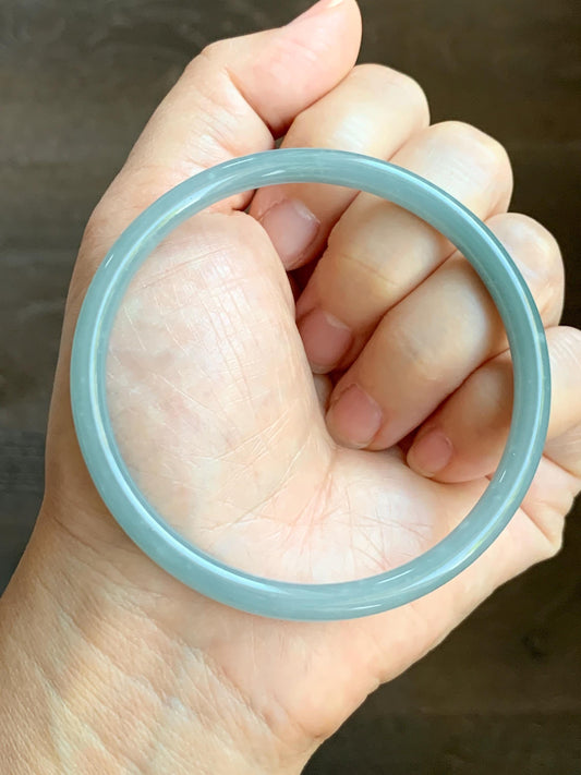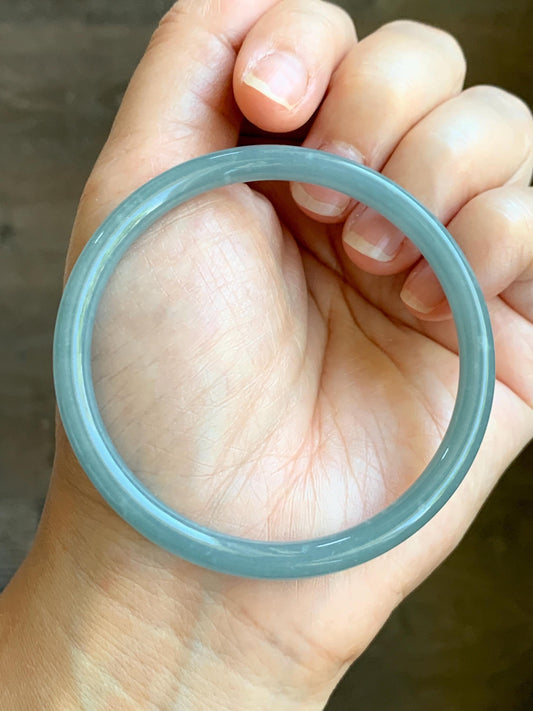 Certified Natural Grade A Guatemalan Icy Translucent Light Dusty Blue Jade Jadeite Bangle Bracelet 56.8mm 7" 17.72g 天然危蓝糯冰浅蓝翡翠圆条手镯 8768