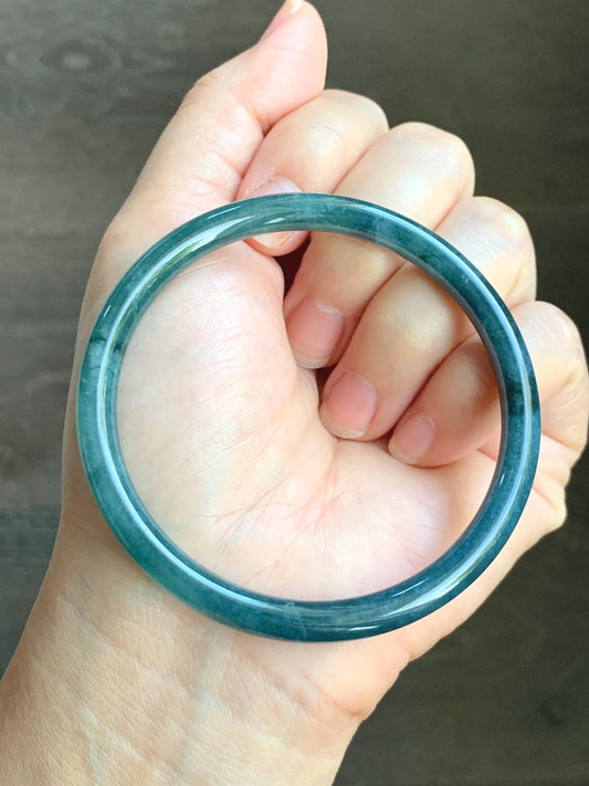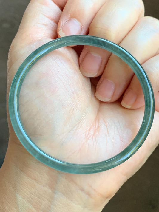 Certified Natural Grade A Guatemalan Icy Translucent Dark Aegean Blue Jade Jadeite Bangle 59.63mm 7.37” 20.47g 天然危深牛仔蓝翡翠细圆条手镯 8772