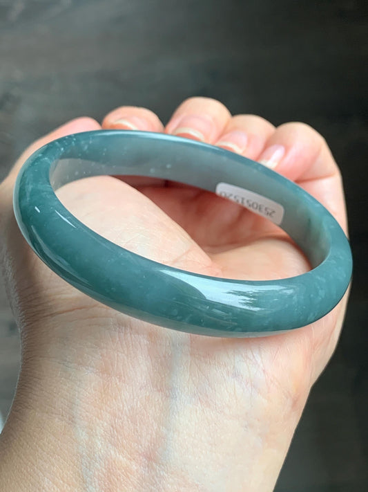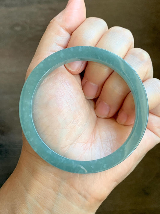Certified Natural Guatemalan Translucent Dusty Teal Blue Jadeite Wide Bangle Bracelet 61.64mm 11.8x6.6mm 45g 7.5" 天然危蓝糯水翡翠正圈轮胎手镯 1520