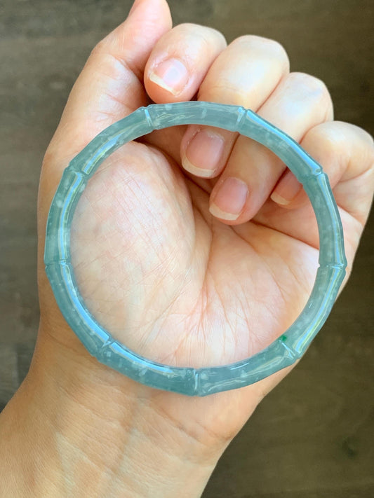 Certified Natural Grade A Guatemalan Icy Translucent Light Teal Blue Jade Jadeite Carved Bamboo Bangle 62.1mm 7.68” 21g 天然危浅篮翡翠竹节手镯 8754
