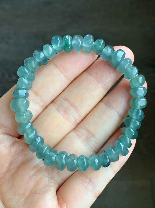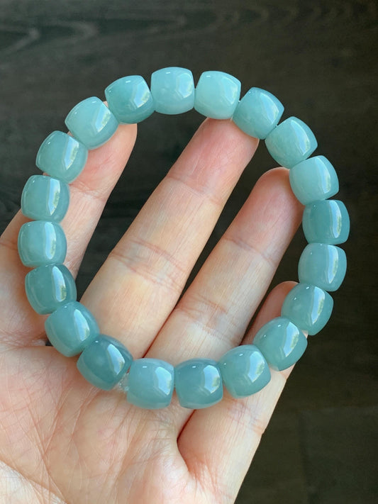 Natural Grade A Guatemalan Icy Translucent Gelatinous Blue Jadeite Barrel Beads Beaded Bracelet Stretchy 7.5” 49g 天然冰危篮翡翠桶珠手串 WLG200