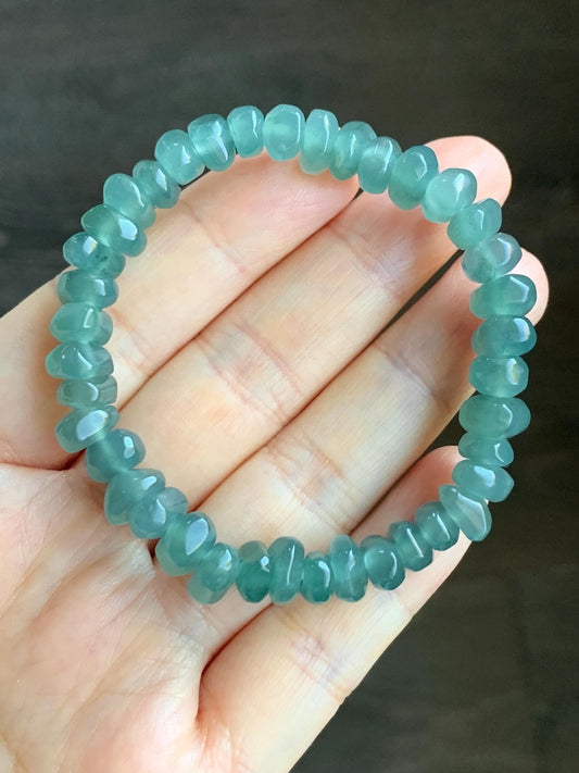 Natural Guatemalan Icy Highly Translucent Teal Blue Jadeite Pomegranate Nugget Beads Beaded Bracelet Stretchy 6.5” 21g 天然冰危蓝水翡翠随形珠手串 No 1