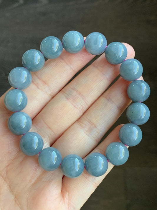 LARGE Natural Grade A Guatemalan Icy Translucent Dusty Purplish Blue Jadeite Beaded Bracelet 11.9mm 7.25” 49g 天然老种冰危暗蓝紫翡翠大卡手串 LZD168