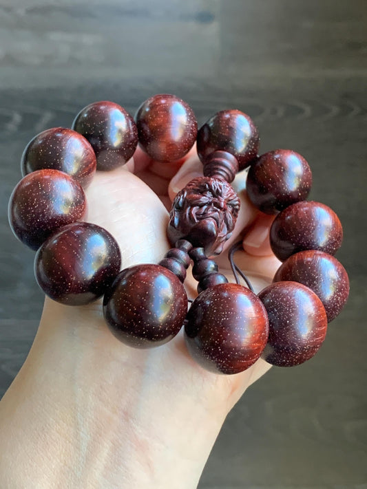 Natural Genuine Red Sandalwood w/ Stars Mala Prayer Beads Beaded Bracelet Stretchy 21.3x22.5mm 9.5” 90g 天然大卡小叶紫檀金星木珠手串一念之间挂坠
