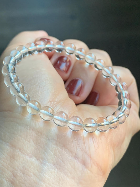 Natural Icy Transparent White Quartz Round Beads Beaded Bracelet Stretchy 6mm 6.5” 9g 天然冰透白水晶圆珠手串