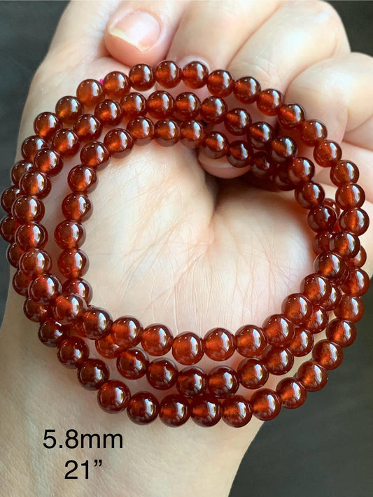 Natural Icy Highly Translucent Intense Persimmon Color Hessonite Garnet Beads Triple Layered Beaded Bracelets 5.8mm 36g 天然冰透起光柿子色石榴石手串