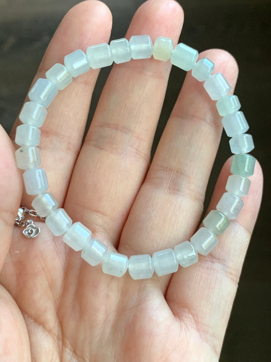 Natural Icy Highly Translucent Pastel Multicolored Jadeite Modified Barrel Beads Beaded Bracelet 6.5” 天然老种冰多宝翡翠桶珠手串 XG324