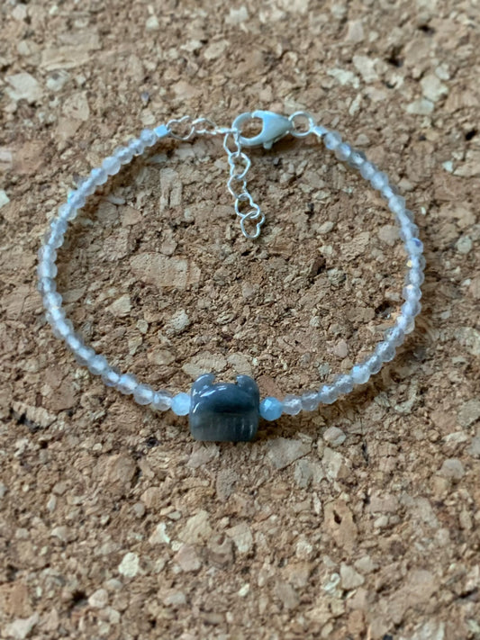 Natural Icy Wuji Jadeite Carved Antler Comb Bead Natural Moonstone Beaded Bracelet Adjustable Sterling Silver 天然冰乌鸡翡翠鹿角梳月亮石手串
