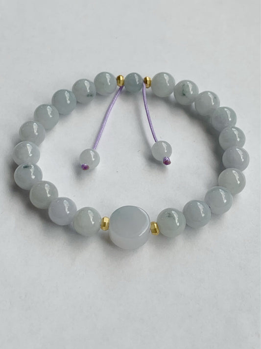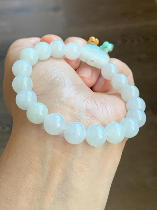 Natural Translucent Jadeite Round Beads and Coin Bead Beaded Bracelet 6.75” 天然翡翠圆珠圆无事牌手串