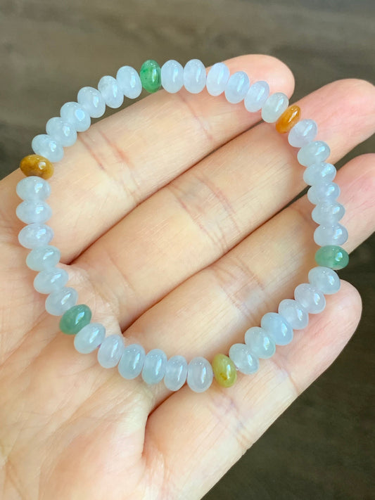 Natural Premium Icy translucent Multi-Colored Jadeite Drum Beads Beaded Bracelet 6.1mm 6.25” 天然起冰起光多宝翡翠鼓珠手串 ZXG131
