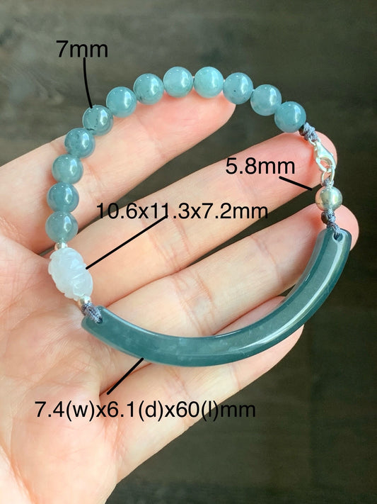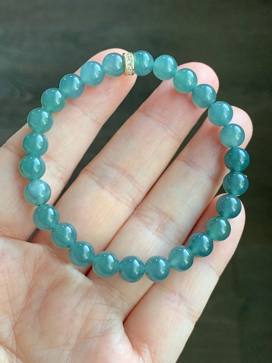 Natural Guatemalan Icy Translucent Dark Teal Blue Jadeite Beaded Bracelet 6.7mm 6.25” 14g Stretchy 天然冰危湖水蓝翡翠手串 QLLW113