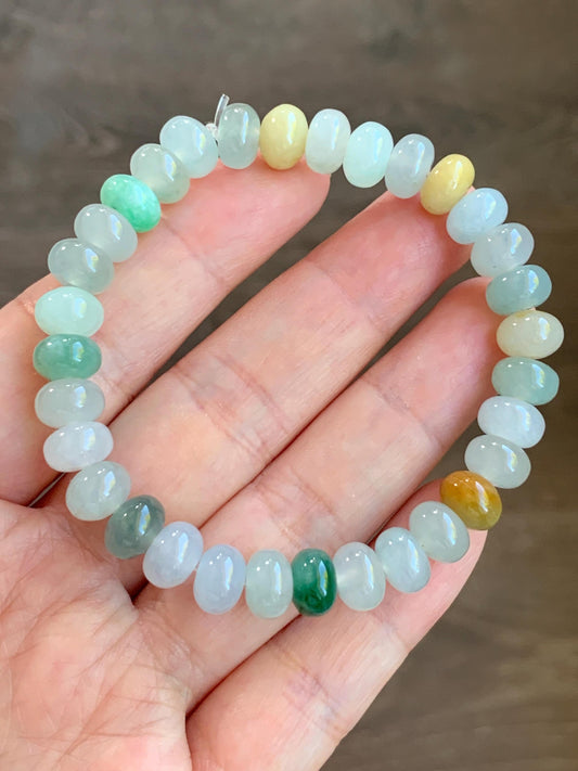 Certified Natural Icy Translucent Multicolored Jadeite Drum Beads Beaded Bracelet Stretchy 6.75” 22.72g 天然冰胶多宝翡翠鼓珠手串 3001