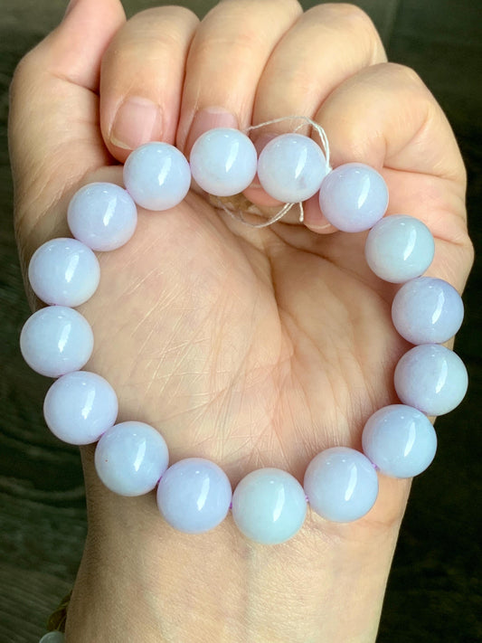 Certified Natural Grade A Icy Translucent Pastel Lavender Jade Jadeite Large Beads Beaded Bracelet 12mm 7” 47.5g 天然冰淡紫底翡翠大卡圆珠手串 1495