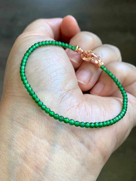 Natural Grade A Guatemalan Icy Highly Translucent Green Jadeite Petite Beads Beaded Bracelet 7” 2.6mm 3g 天然高冰危绿翡翠小卡圆珠手串 XWS330