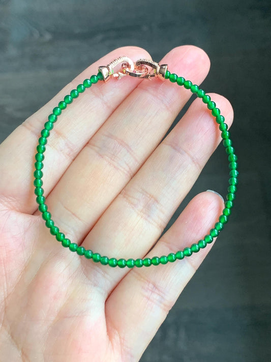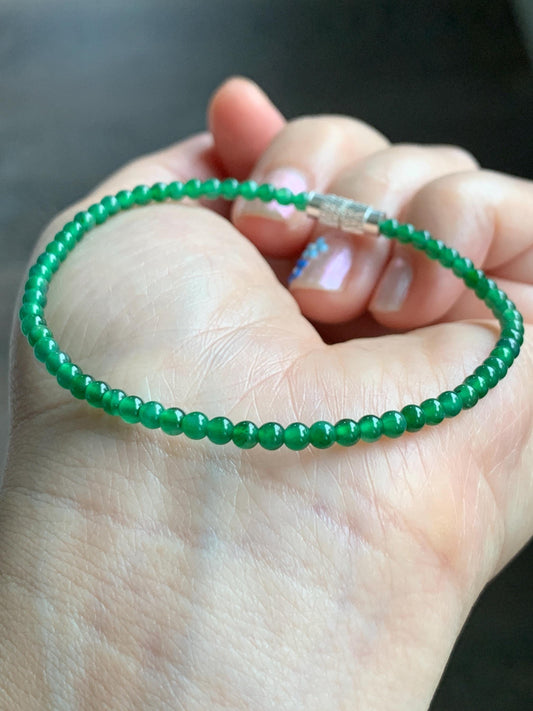 Natural Grade A Guatemalan Icy Highly Translucent Vibrant Green Jadeite Petite Beads Beaded Bracelet 7” 2.7mm 3g 天然高冰危绿翡翠小卡圆珠手串 KJ500