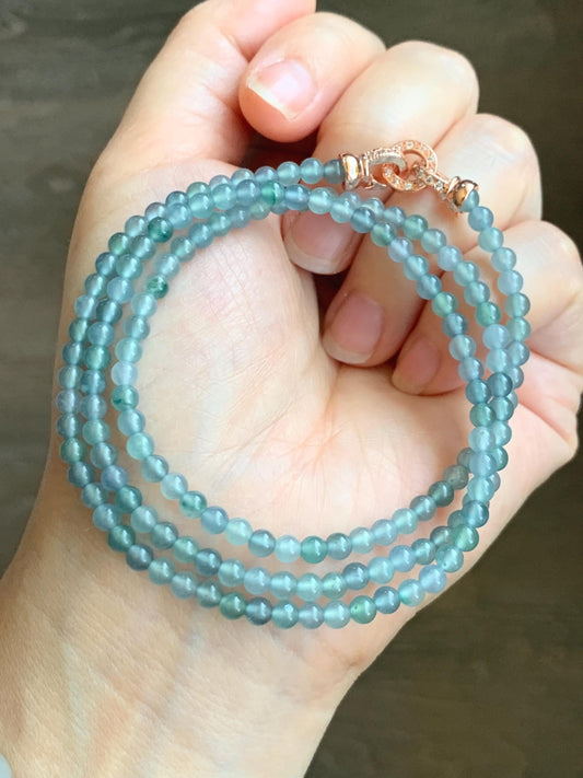Natural Grade A Guatemalan Icy Highly Translucent Pastel Blue Multicolored Jade Jadeite Petite Beaded Necklace 22.5” 3.9mm 天然冰危淡蓝翡翠小珠项链 WDBL