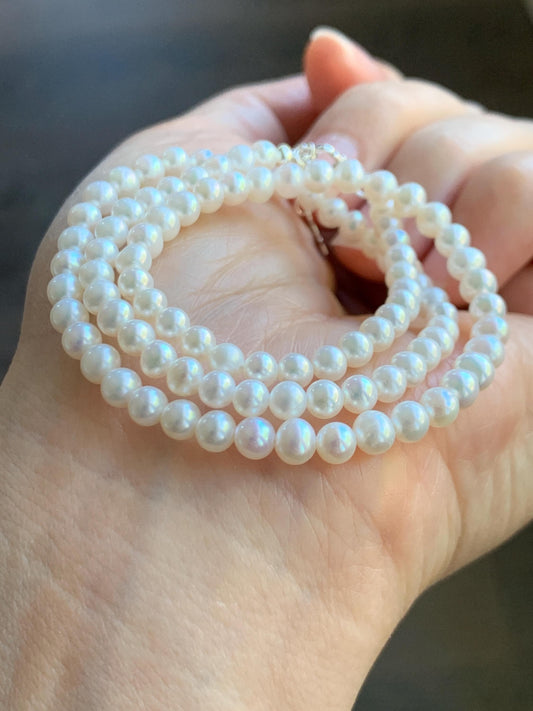 Natural Freshwater All-Nacre Metallica White Round Pearls Beaded Necklace Sterling Silver 5.7-6mm 16.5”-17” 18g 天然淡水无核白珍珠项链 WHZ560A