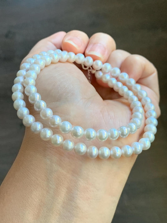 Natural Freshwater All-Nacre White Round Mini Pearls Beaded Necklace Sterling Silver Clasp 5mm 16.25”-17.75” 14g 天然淡水无核小米白珍珠项链 XMB280A