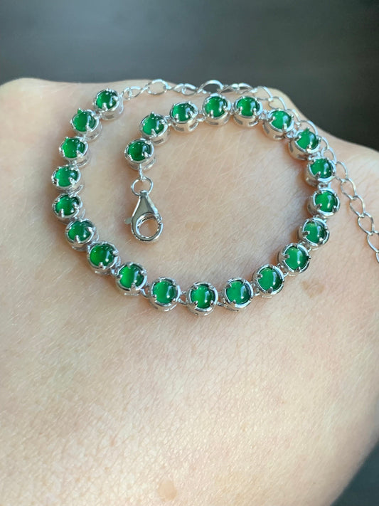 Certified Natural Guatemalan Premium Icy Vibrant Green Jadeite Tennis Bracelet S925 Sterling Silver adjustable 天然高冰危绿翡翠银镶手链 8052