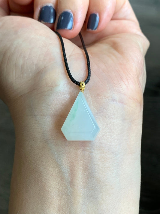Natural Icy Translucent Gelatinous Light Green Marbled Jadeite Diamond Cut Pendant 18K Yellow Gold Bail 天然白冰飘花翡翠钻石切割面镶嵌吊坠