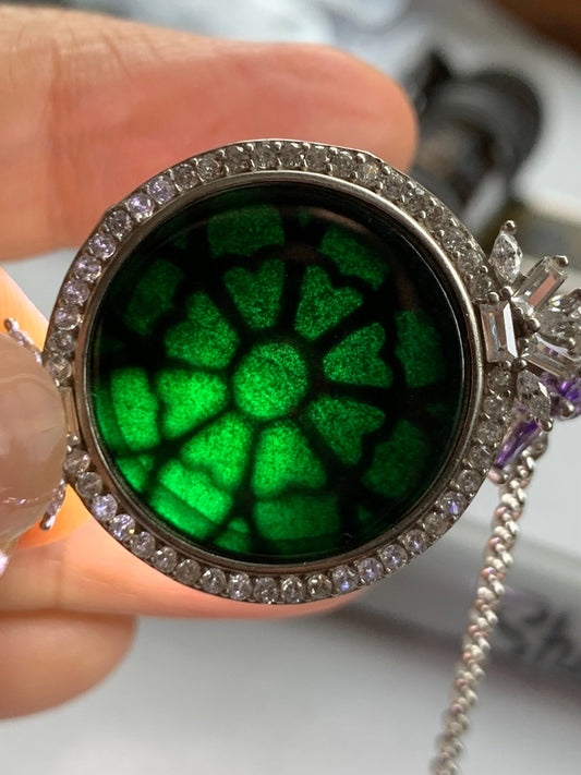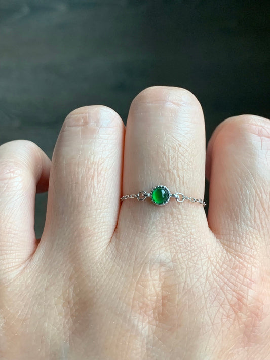 Natural Guatemalan Icy Vibrant Green Jadeite Round Cabochon Petite Chain Ring S925 Sterling Silver Adjustable 天然冰危绿翡翠镶嵌戒链戒指 LJ30