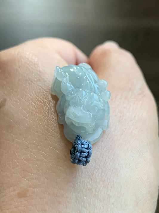 Natural Grade A Icy Translucent Gelatinous Pastel Dusty Blue Jadeite Pixiu Pendant Rope Bail with Black Cord Necklace 11g 天然冰胶淡蓝翡翠貔貅吊坠