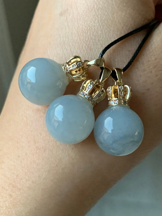 Huge Natural Translucent Wuji Light Blue Jadeite Single Bead Pendant 14K Yellow Gold PLATED 天然蓝底冰乌鸡翡翠单珠吊坠14K包金