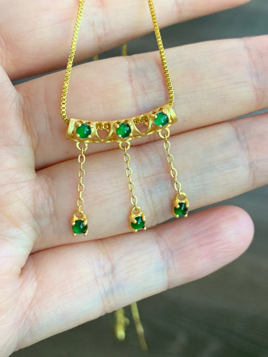 Natural Guatemalan Premium Vibrant Green Jadeite Dangle Pendant S925 Silver Yellow Gold Finish w/ Chain 天然高冰危绿翡翠流苏吊坠套链