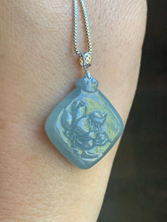 Natural Guatemalan Icy Translucent Light Dusty Blue Jadeite Lotus Flower Pendant 18K White Gold 4g 天然冰危淡蓝翡翠莲花镶嵌吊坠 LDQL