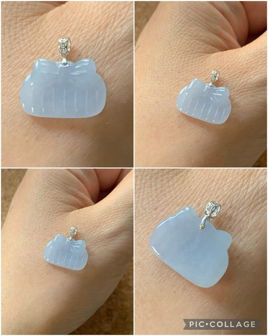 Natural Icy Translucent & Gelatinous Light Purple Jadeite Comb Petite Pendant 18K White Gold w/ Chain 天然冰紫翡翠小鹿或梳子锁骨吊坠