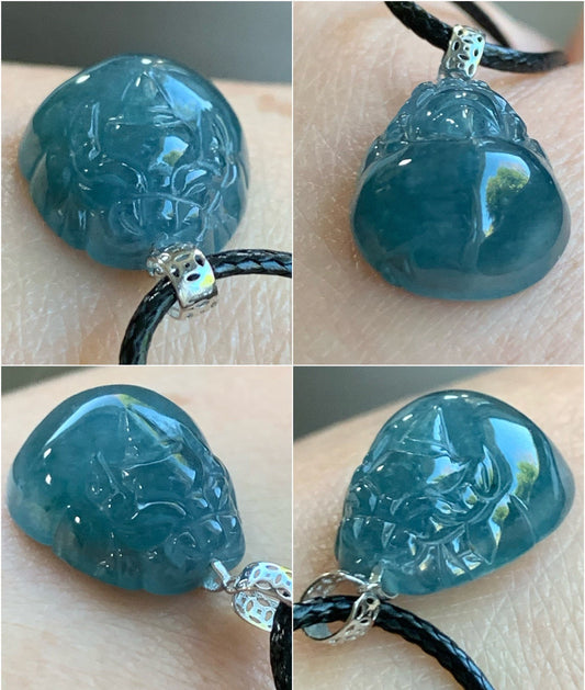 PETITE Natural Guatemalan Icy Translucent & Gelatinous Rich Blue Jadeite Pudgy Pixiu Pendant 18K White Gold Bail 天然老种冰危蓝起胶翡翠貔貅K金吊坠 PX0215