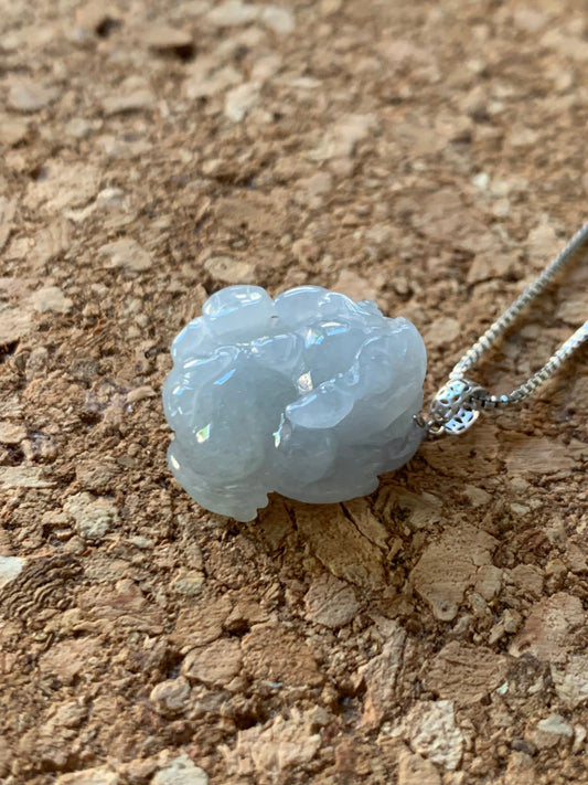 Natural Icy Translucent & Gelatinous Light Dusty Blue Jadeite Male Pixiu Pendant w/ 18K White Gold Bail 天然冰胶淡蓝底翡翠带吧貔貅吊坠