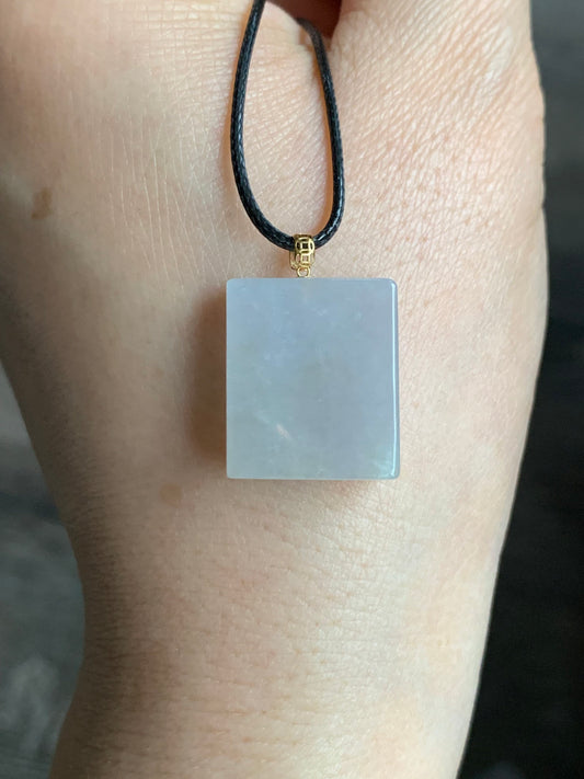 Natural Icy Translucent Beige Jadeite Rectangle Pendant 18K Yellow Gold 天然冰糖黄翡翠方牌镶嵌吊坠